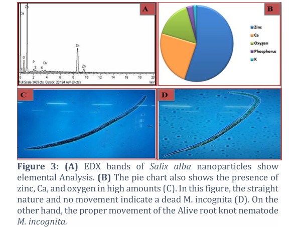 Conclusion: Our findings suggest that zinc oxide nanoparticles synthesized from Salix alba bark can be an effective agent against the plant parasitic nematode Meloidogyne incognita. Further experiments are recommended to study the impact of these nanoparticles on other biotic stresses.