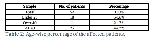 When looking at the age distribution, the most affected group was between 20 and 40 years old, comprising 44.2% (23 patients) of the cases. Patients under 20 years of age represented 34.6% (18 patients), while those over 40 accounted for 21.2% (11 patients). This suggests that young to middle-aged adults are more susceptible to hydatid disease (Table 2).