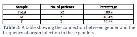 Gender-wise, there is a higher prevalence of infection among females, who made up 59.6% (31 patients) of the cases, compared to males, who represented 40.4% (21 patients). This indicates that hydatid disease is more common in females in this sample (Table 3).