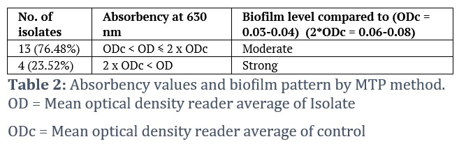 Using the method described by Lamichhane et al., [13], the microtiter plate technique was employed to assess biofilm formation: