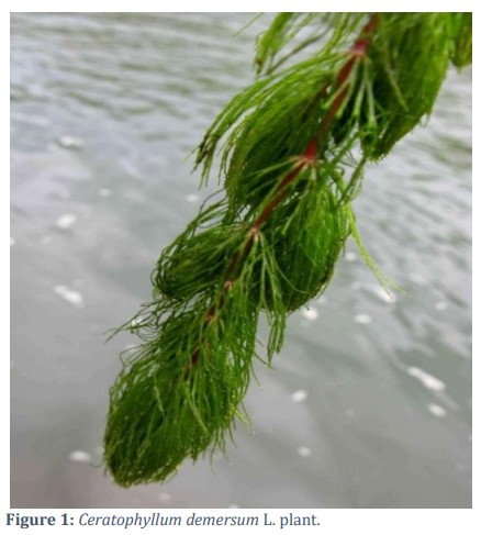 Figure 1 illustrates Ceratophyllum demersum L., commonly known as Coontail or Hornwort. As a rootless floating plant, this organism has inhabited the water bodies across the various aquatic ecosystems worldwide [17]. It is often classified as an invasive aquatic species due to its ability to cover vast areas of freshwater bodies, such as rivers and lakes. The plant’s rapid propagation and high abundance have led to various environmental concerns in both freshwater and wastewater ecosystems [15]. However, invasive plant species present significant potential for bioresource utilization due to several factors, including their high photosynthetic efficiency, fast growth rate, rich carbohydrate content, minimal land requirements, and lack of competition with food crops. The plant biomass is divided into lipids, proteins, and carbohydrates, with fermentable carbohydrate fraction capable of converting into liquid bioethanol [18].