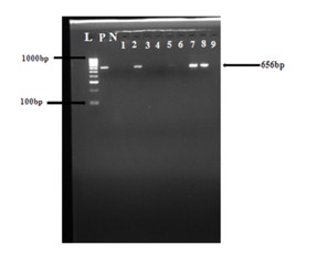 The prevalence of HBV markers among blood donors is detailed in Table 1. A total of 200 blood samples were screened for HBsAg, HBsAb, HBeAg, HBeAb, and HBcAb. Among these samples, 40 tested positive for one or two markers in combination, while 160 were serologically negative for all markers. Notably, none of the samples tested positive for HBsAg, HBeAg, or HBeAb alone. HBsAb was detected in 5 (2.5%) samples, HBcAb in 4 (2%) samples, HBcAb&HBeAb in 20 (10 %) samples, and HBsAb&HBcAb in 11 (5.5%) samples. No sample tested positive for more than two markers. Table 1 also presents the demographic characteristics and HBV risk factors among blood donors with and without OHBI. Of the 200 blood donors screened, 4 (2%) had OHBI, with ages ranging from 18 to 31 and from 32 to 45 years. Among these OHBI donors, 3 (1.5%) were first-time donors, and only 1 was a repeated donor. Among the OHBI-negative donors, 20 (10%) were vaccinated, while 176 were unvaccinated, and 3 (1.5%) had a history of blood transfusion. Further demographic characteristics are delineated in Table 1. The liver function profile of infected OHBI donors is shown in Table 2, highlighting AST values ranging from 9.5 to 11.3 U/L, ALT from 10.8 to 12.8 U/L, ALP from 110.01 to 201 U/L, ALB from 3.0 to 5.0 g/dl, and Total protein from 6.2 to 8.0 g/dl. Moreover, Table 3 indicates that the combined prevalence of hepatitis B surface antibody (Anti-HBs) and hepatitis B core antibody (Anti-HBc) was 5.5%. PCR results in HBsAg-negative blood donors are based on HBV DNA detection, and only samples positive for both HBcAb and HBsAb were subjected to PCR analysis. Three of the nine samples tested amplified the HBV gene, producing a 656 bp DNA product, confirming the presence of HBV DNA (Figure 1).