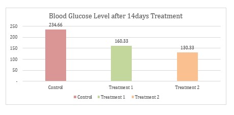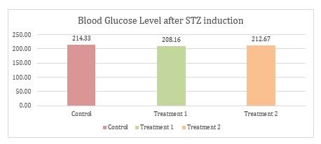 Blood glucose levels in the mice were assessed following five days of STZ induction and subsequent administration of Tulsi ethanolic extract for 14 days [18]. The measurements of blood glucose were performed utilizing a Nesco Glucose Test, with blood samples obtained from the tail vein.