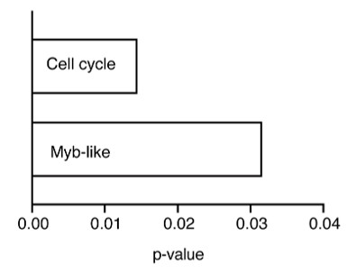 Microarray data involving yeast with extreme desiccation tolerance are available [23]. Using these data, we extracted genes that showed more than 2-fold expression in response to dehydration and after rehydration and performed a DAVID analysis by comparison with the data before dehydration (Table S4). The obtained information revealed a number of DNA repair- and transcription-related pathways. Among them, pathways involved in cell proliferation, such as those involving MYBs and the cell cycle, were included (Figure 5).